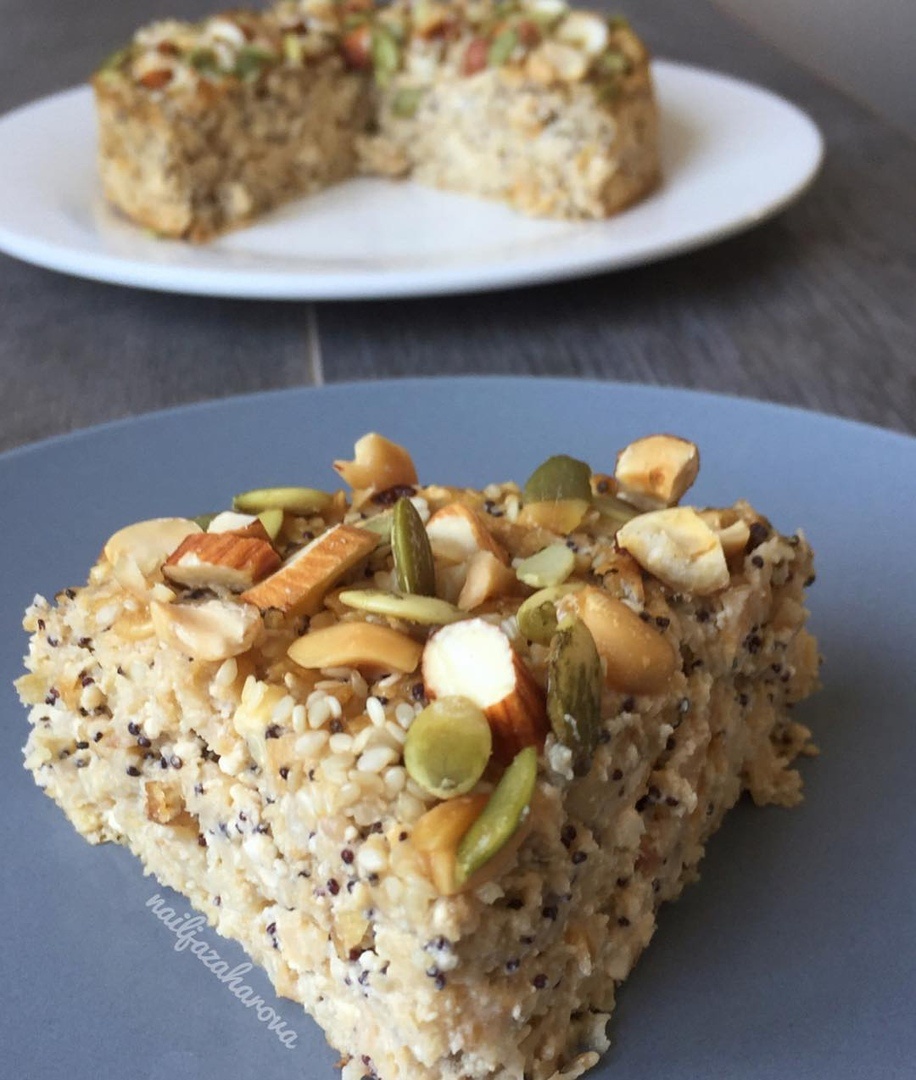 3. Получившуюся массу вылейте в форму для запекания и ровным слоем посыпьте сверху орехами или семечками.