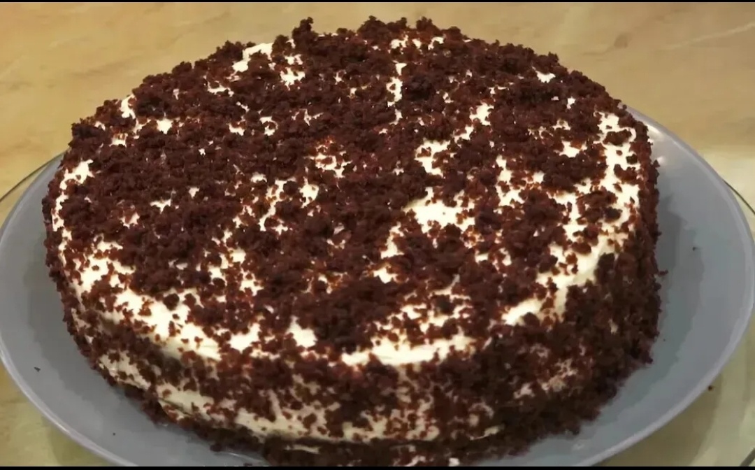 8. Перед подачей посыпать торт крошкой из коржа.