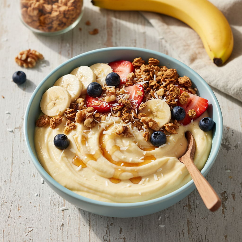 Смело можно назвать это десертом на основе йогурта и банана одним из самых популярных и полезных среди сладких угощений. Благодаря замороженным фруктам, его можно легко адаптировать под любой вкус, а по консистенции оно напоминает как густой смузи, так и легкое 'мороженое' — идеально освежает в жаркую погоду.
