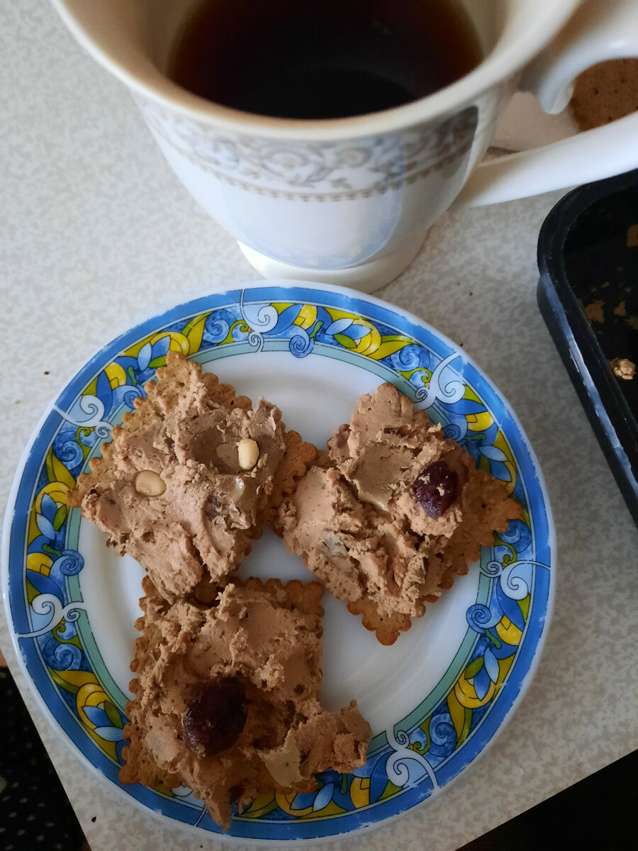 К кофе идеально подошли бутерброды. На ржаных несладких крекерах были великолепные сочетания: паштет из куриной печени, украшенный кедровыми орешками и черносливом. Это сочетание капризной сладости и насыщенного вкуса принесло настоящее гастрономическое наслаждение!
