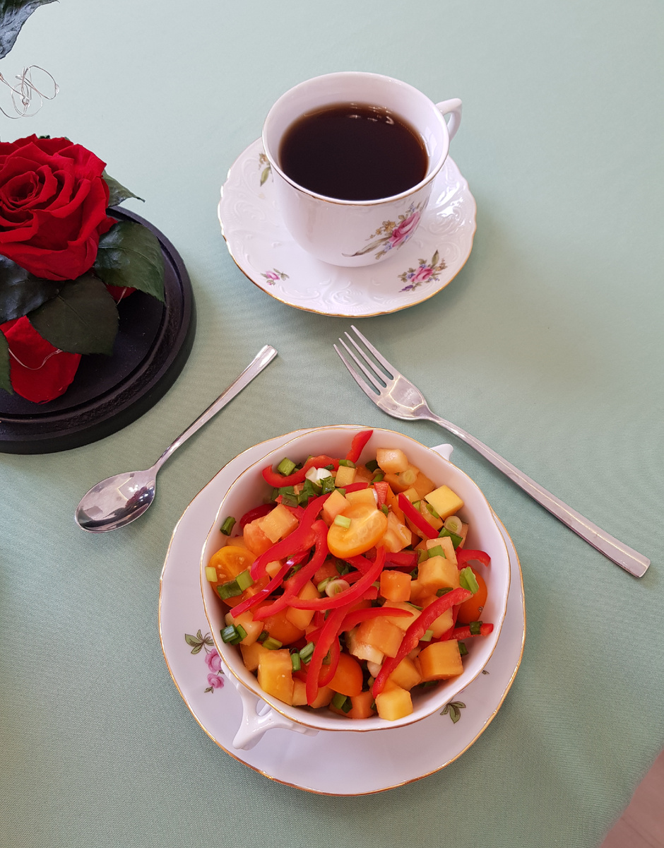 Праздничный салат из папайи и свежих овощей готов! Приятного аппетита!