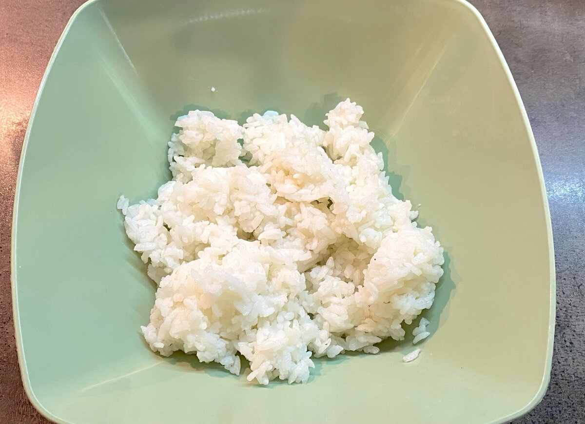 Начнем с подготовки. Для начала, круглозерный рис необходимо хорошенько промыть и отварить до готовности. После этого дайте ему остыть и переложите в глубокую миску.
