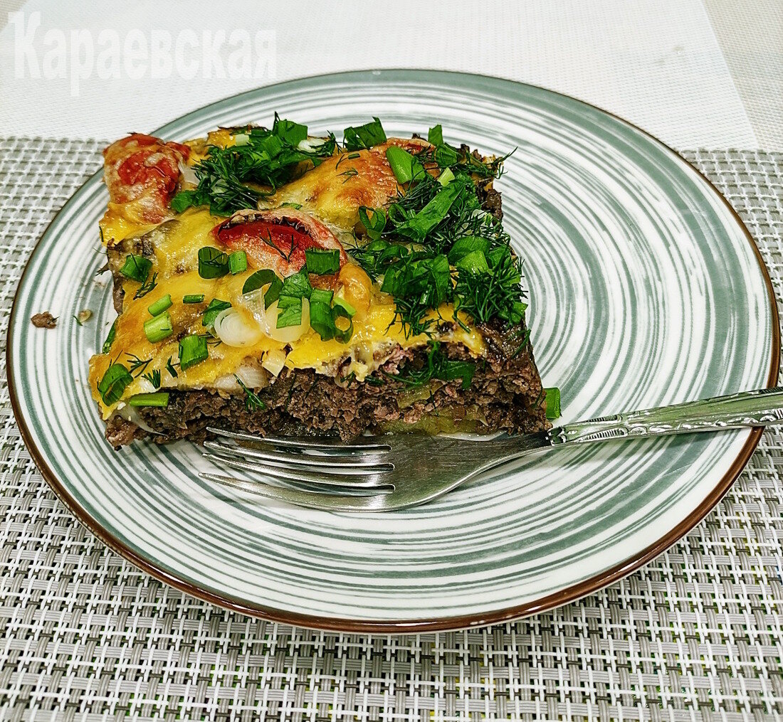 Форма для запекания мастится растительным маслом или сметаной. В нее выкладывается половина овощей, затем ровным слоем распределяется фарш, и на него помещается оставшаяся часть овощей. Сверху на запеканку укладываются помидоры.