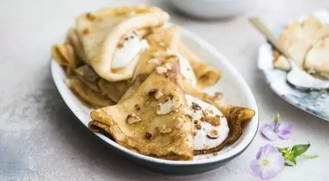 Блины — это не только универсальное лакомство, но и прекрасный повод продемонстрировать кулинарные таланты. Настоятельно рекомендуется попробовать особую версию блинов, приготовленных на ряженке, которая придаст им замечательный вкус и аромат. А чтобы сделать это блюдо еще более аппетитным, стоит дополнить его кремом из творога и бананов. Воздержитесь от соблазна попробовать начинку до того, как блины будут готовы — поверьте, итоговый результат вас приятно удивит!