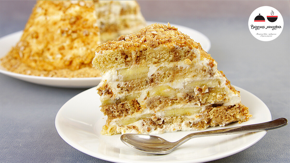 Перед подачей можно украсить торт сметаной и крошкой из пряников. И вот, простое и быстрое лакомство готово к вашему столу!