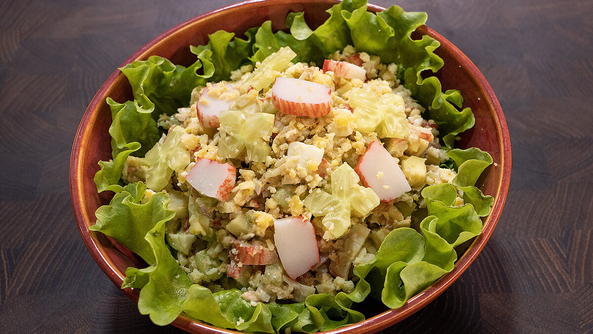 Этот простой и бюджетный салат из крабовых палочек способен оставить в восторге даже самых искушенных гурманов. Яркие цвета и восхитительный вкус сделают его отличным дополнением к любому праздничному столу.