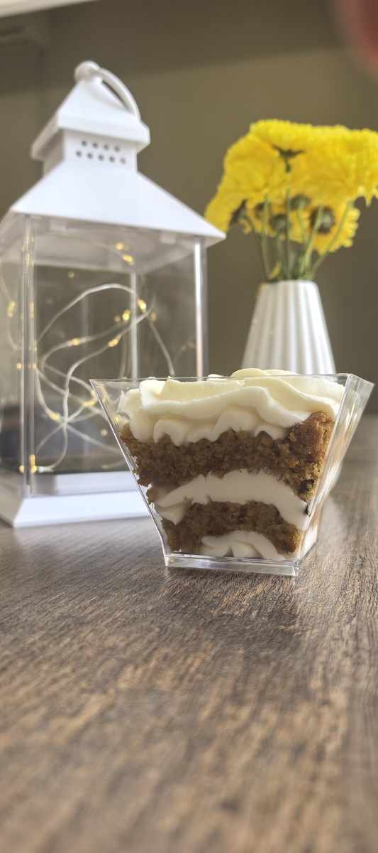 Представим себе ароматный, влажный бисквит, насыщенный вкусом моркови и орехов. Пока он сохраняет тепло из духовки, его аккуратно раскрошивают в миске. Создание мини-десертов превращается в маленький ритуал: крошки коржа чередуются с облаком крема и каплями апельсиновой карамели. Этот десерт словно обнимает: он несет в себе душу классического торта, предлагая каждому свой собственный осенний мир.