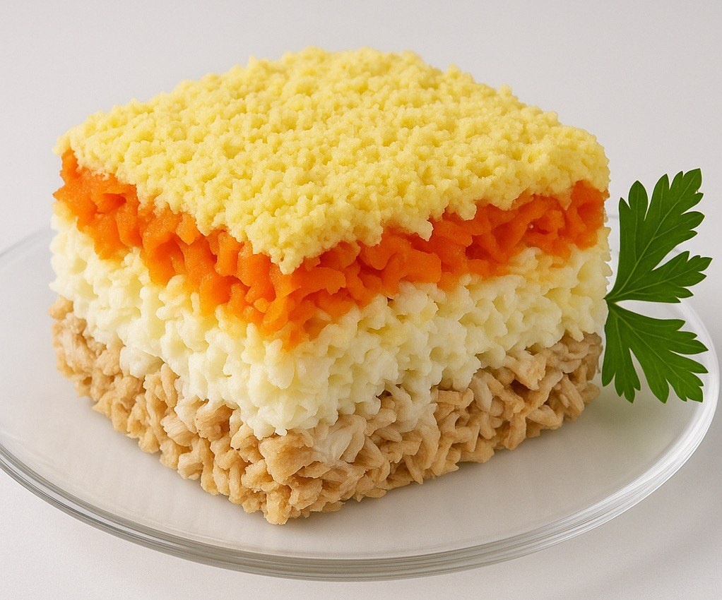 Салат «Мимоза» всегда привлекал внимание своим ярким цветом и многоуровневой подачей. Его легко приготовить, и он послужит отличным украшением любого стола.