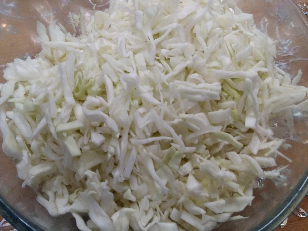 1. Начинаем с нарезки капусты соломкой. Грубая или тонкая – выбирайте, как вам больше нравится.
