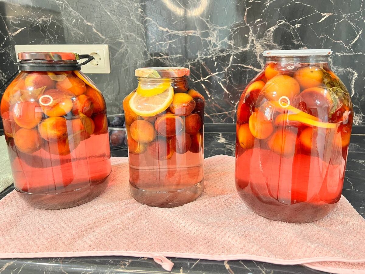В стерильные банки аккуратно укладываются вымытые сливы. Затем добавьте несколько кружков лимона и пару веточек свежей мяты. Наполните банки кипящей водой, оставляя немного пространства у края. Дайте настояться 15 минут, после чего слейте воду в раковину – она уже не понадобится.