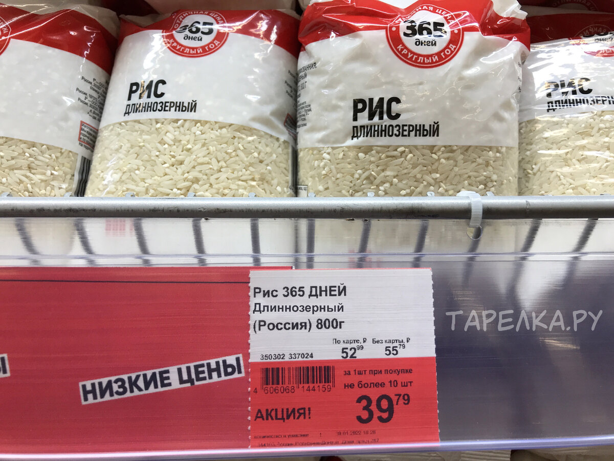 На фоне скандала о пластиковом рисе, в одном из продуктовых магазинов был замечен значительно дешевый аналог — упаковка 800 грамм за всего 39,79 рублей (55,79 рублей без скидки). При этом, минимальная цена на рис аналогичного веса у других производителей начиналась от 100 рублей.