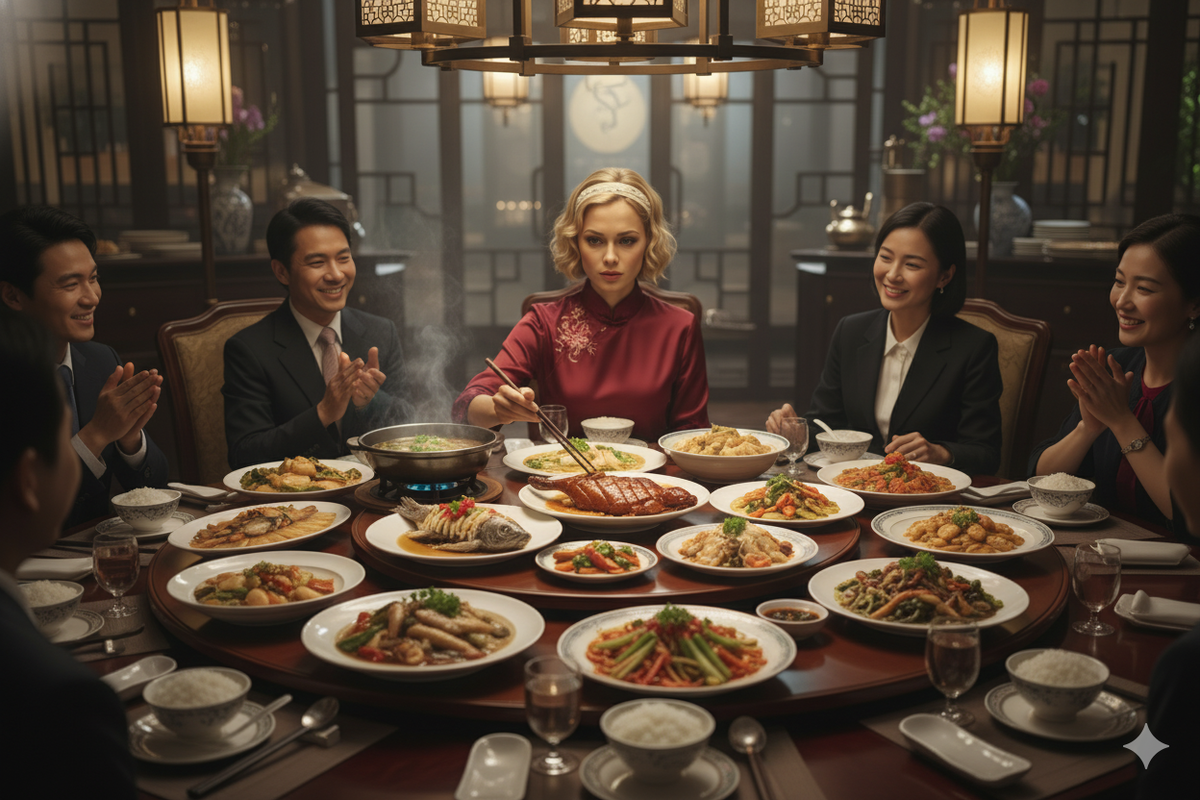 Круглый стол в китайских ресторанах символизирует единство гостей, где никто не остается в стороне. Часто используется вращающаяся платформа, обеспечивающая удобный доступ к блюдам. Важные положения за столом тоже не случайны: хозяин решает, кто и где будет сидеть, стараясь следовать правилам уважения.