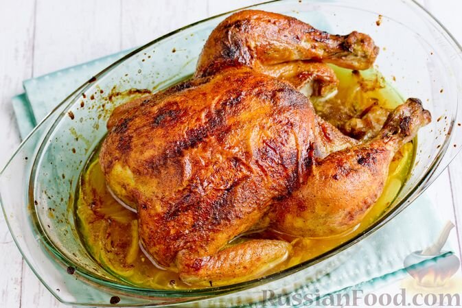 Запеченная целиком курица на праздничном столе — это всегда великолепный выбор. Один из вариантов — курица под медово-соевой глазурью, которая дарит необычную сладость и сочность. Запекается блюдо на луковой подушке, благодаря чему вы получаете невероятный вкус.