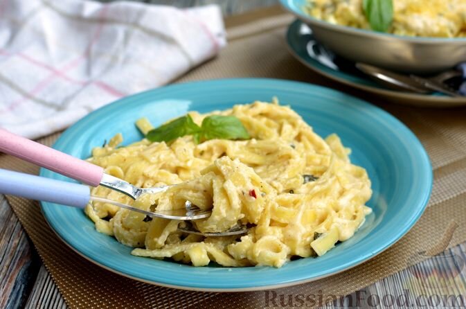- Паста в сливочно-сырном соусе: Традиционный рецепт пасты «Альфредо» за 15 минут — это быстро и эффективно! Нежная лапша с кремом и пармезаном, насыщенный вкус которой не требует дополнительных добавок.