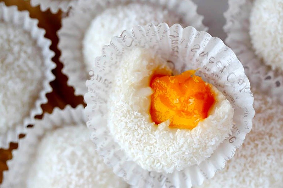 В глубокой миске смешайте рисовую муку, кукурузный крахмал и сахарную пудру. Постепенно добавляйте кокосовое молоко, аккуратно перемешивая венчиком, чтобы избежать образования комочков. В конце добавьте растительное масло и тщательно ещё раз перемешайте.Перелейте получившуюся массу в емкость, подходящую для пароварки. Установите в пароварку и готовьте в течение 10-20 минут. Время приготовления может варьироваться в зависимости от устройства и толщины слоя теста. Проверьте готовность, надрезав тесто: если выделяется жидкость, дайте ему поработать ещё немного. Ваша цель — получить полностью заваренное тесто.После завершения процесса перенесите тесто в чистую миску, предварительно накрыв её пленкой. Убедитесь, что на стенках емкости не осталось затвердевших кусочков, чтобы не испортить текстуру. Дайте тесту немного остыть, а затем, используя пленку, тщательно вымесите его в течение 3-4 минут. Заверните в пленку и уберите в холодильник.Когда тесто охладится, оторвите небольшой кусок и сожмите его в ладонях, формируя небольшой шарик. Удобнее всего это делать в перчатках. Затем раскатайте в блинчик, положите в центр кусочек манго и аккуратно соберите края, создавая аккуратный шарик. Обваляйте его в кокосовой стружке.Проделайте то же самое с остальным тестом и отправьте готовые сладости в холодильник на пару часов. Приятного аппетита!Эти необычные сладости обязательно станут любимым десертом вашей семьи и друзей. Делитесь своими кулинарными открытиями!