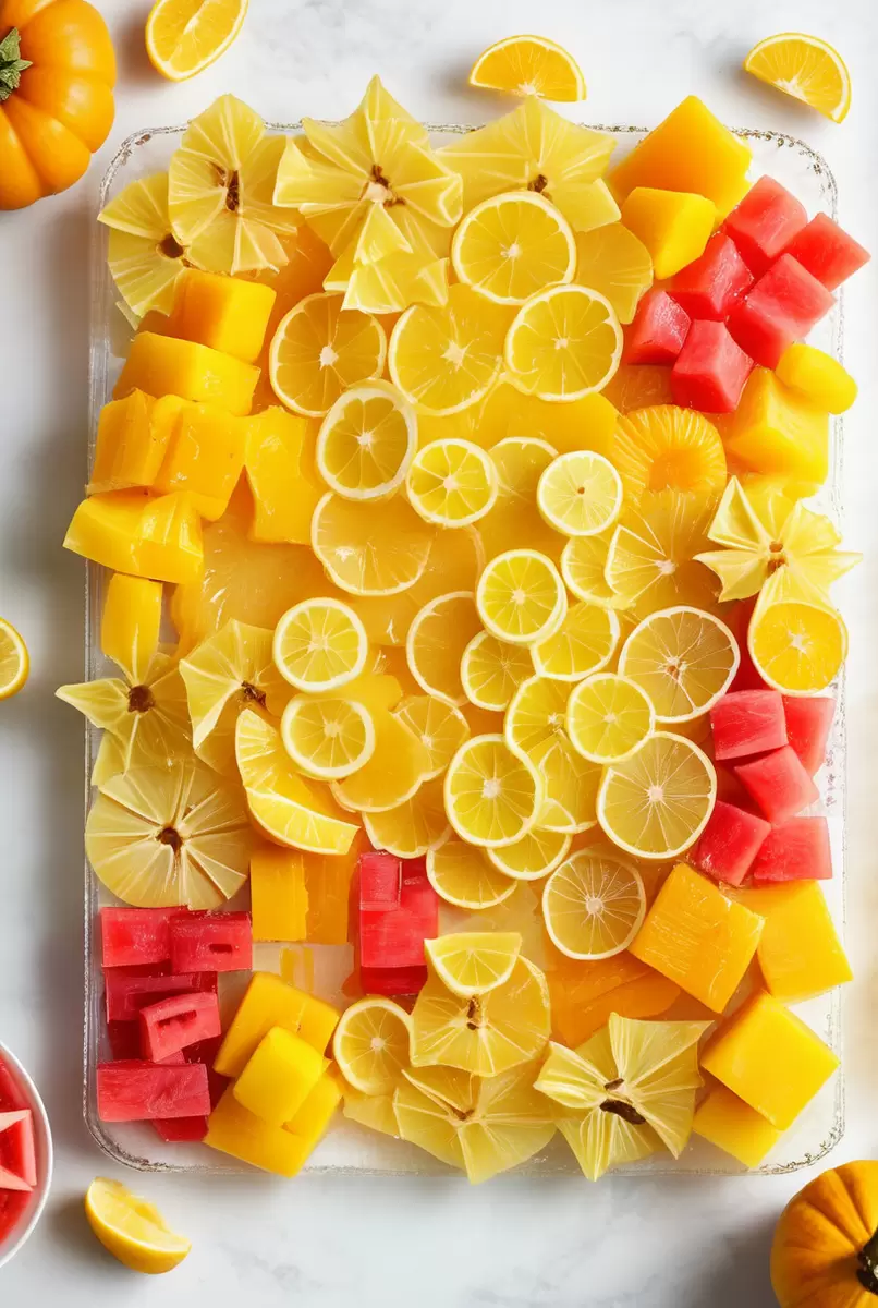 - Фрукты: ананасы, лимоны, манго, дыня, папайя