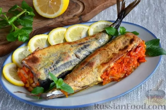 Присмотритесь к запеченной скумбрии, фаршированной свежими овощами. Это не просто изысканное, но и полезное блюдо! Сочетание тушеных помидоров, лука и моркови сделает рыбу невероятно нежной, а сметанно-горчичный соус придаст ей неповторимый вкус.