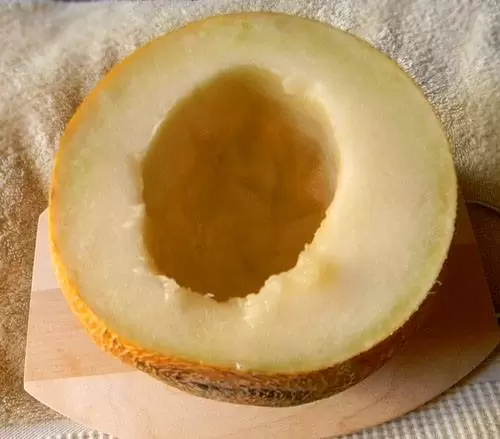 Начнем с подготовки агара: для этого потребуется 1 чайная ложка агара, которую необходимо замочить в 200 мл виноградного сока на 30 минут. Затем разрежьте дыню пополам, удалите косточки и аккуратно очистите внутренности, оставляя ровные стенки.