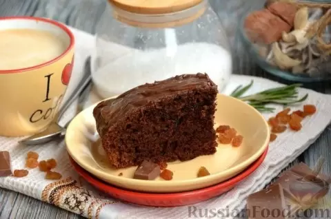 - Шоколадный пирог на кефире - этот десерт удивляет своей влажностью и нежной текстурой. Особенностью является добавление изюма, а шоколадная глазурь превращает его в настоящее произведение искусства.